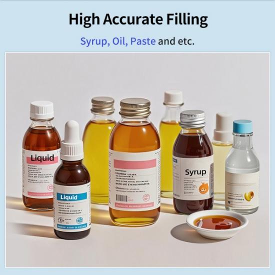 En cuanto a materiales líquidos, se adapta perfectamente a diversos líquidos como jarabes, colirios y líquidos orales. En la industria farmacéutica, la máquina llenadora de líquidos puede operar de forma estable con medicamentos líquidos de diferentes composiciones y concentraciones, garantizando la seguridad e higiene del proceso de llenado. En la industria de productos sanitarios, la máquina llenadora de líquidos Rich Packing también puede procesar diversos líquidos nutricionales, jarabes para la salud, etc., con diferentes características como viscosidad y acidez. En la industria alimentaria, esta máquina llenadora también puede procesar eficientemente zumos de frutas, salsas, aceites comestibles, etc., y en la industria química, diversos reactivos líquidos, lubricantes, etc.