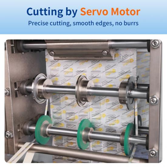 La máquina envasadora de tiras de aluminio RQ-SAP-300L emplea tecnología de plegado bidireccional, que aplica pliegues simultáneamente en ambas caras de la película de embalaje. La profundidad del pliegue es altamente uniforme, con desviaciones controladas dentro de 0,03 mm, lo que garantiza un fácil rasgado y la estabilidad del embalaje. Esta tecnología, utilizada en la máquina envasadora de tiras médicas, no solo mejora la experiencia del usuario, sino que también reduce el consumo de película y, por lo tanto, los costos.